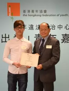 佢同其餘七位曾誤入歧途的年青人,被青年協會「重新出發」青年嘉許計劃選為得獎者,更由「一哥」曾偉雄手中接過獎項。