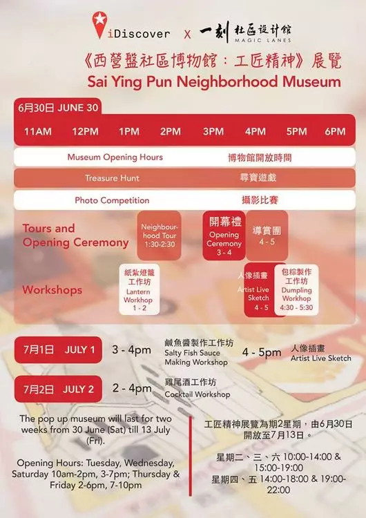 為推廣西營盤社區文化及傳統工藝,「一刻社區設計館」及iDiscover團隊於常豐里合辦《西營盤社區博物館:工匠精神》展覽,由6月30起至7月13日,為期約兩個星期。