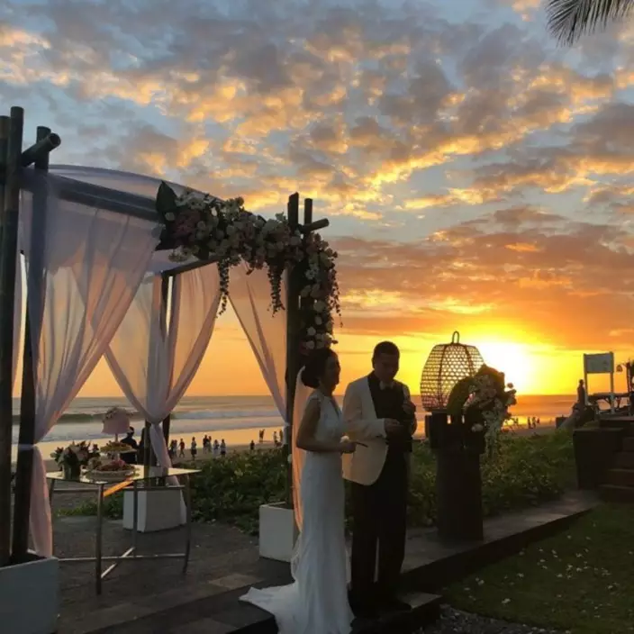 吳忠義與女友Beth在峇里海邊舉行黃昏浪漫婚禮。