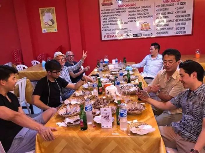 婚禮前一日吳忠義跟包括兩個兒子在內的家人及老友聚餐。