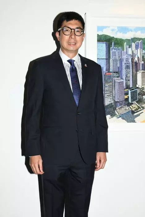 前港姐錢慧儀老公馬清揚出席畫展,剛從英國回港的他表示於當地出席幼子中學畢業禮。