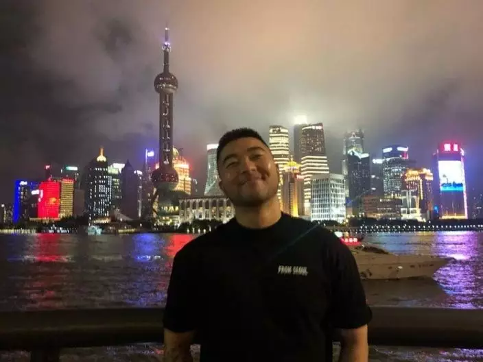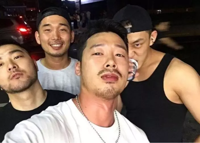 劉亞仁被爆在上海期間,與3壯男蒲同志酒吧,左一被傳是他的「男友」。(網上圖片)