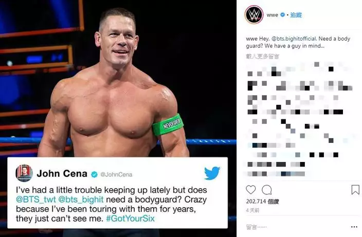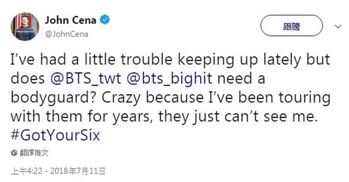 雖然這推文可能只是一個小玩笑,但如果真的有John Cena當保鏢,相信防彈少年團在美國也會安全不少!