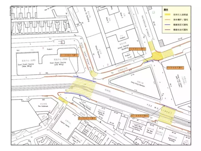 對於防撞欄是固定抑或可伸縮,李碧儀指出,當局提交予區議會的文件未有詳細交代,但重申做任何事情都需要平衡,尤其因為該處有上落貨的需要,亦要平衡商住居民的使用,留有彈性較為適合。