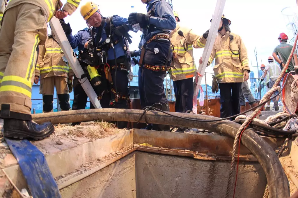 消防到場配備氧氣樽進入沙井,發現兩人昏迷在內,於是用地盤的吊籠,將兩人救出,分別送往明愛及瑪嘉烈醫院,其中一人搶救無效死亡。勞工處正調查意外原因。