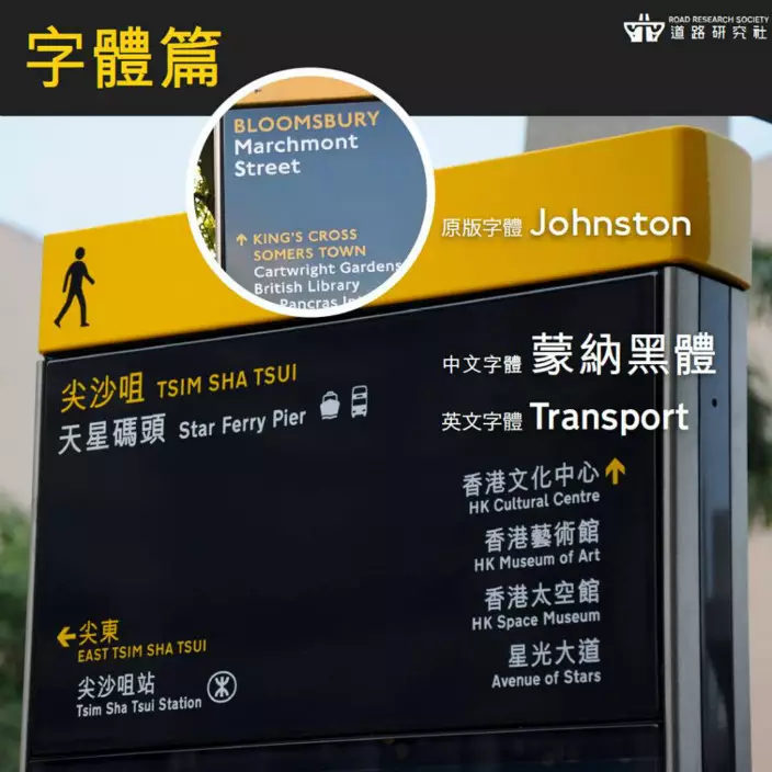 連輸署尖沙咀試行英國風指示牌,倫敦交通局有份設計。倫敦交通局圖片