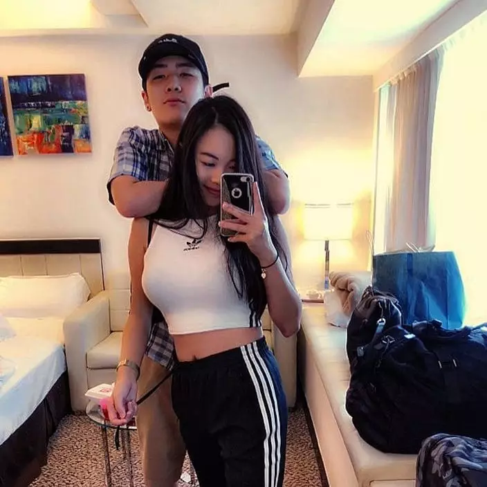 卓文一身韓仔look,似足韓星oppa,而女友則身穿緊身背心、短裙,凸顯她玲瓏浮凸的身材。(《東周刊》圖片)