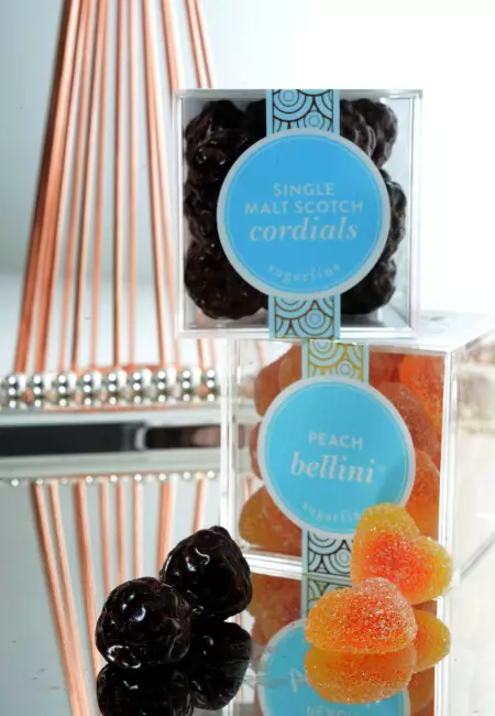 坊間的軟糖多是明膠和糖分,Sugarfina卻用真酒和真水果蓉製作,味道截然不同,Josh最欣賞的Single Malt Scotch Cordials和Rosie最愛的Peach Bellini就是代表作。Single Malt Scotch Cordials是一顆以朱古力外殼包裹蘇格蘭威士忌的糖果,選以不加工的原酒(Cask Strength)製作,香醇濃烈,一咬開酒香四溢,是屬於男士的味道。