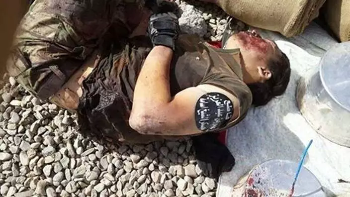 其中一張相片見到,該名亞裔戰俘身穿軍綠色上衣,左臂上貼有IS標記,被一名伊拉克士兵押著,他面部紅腫,雙眼閉合,似乎曾受虐打。另一張相片中,戰俘捲曲身體躺在石地上,似乎陷入昏迷。