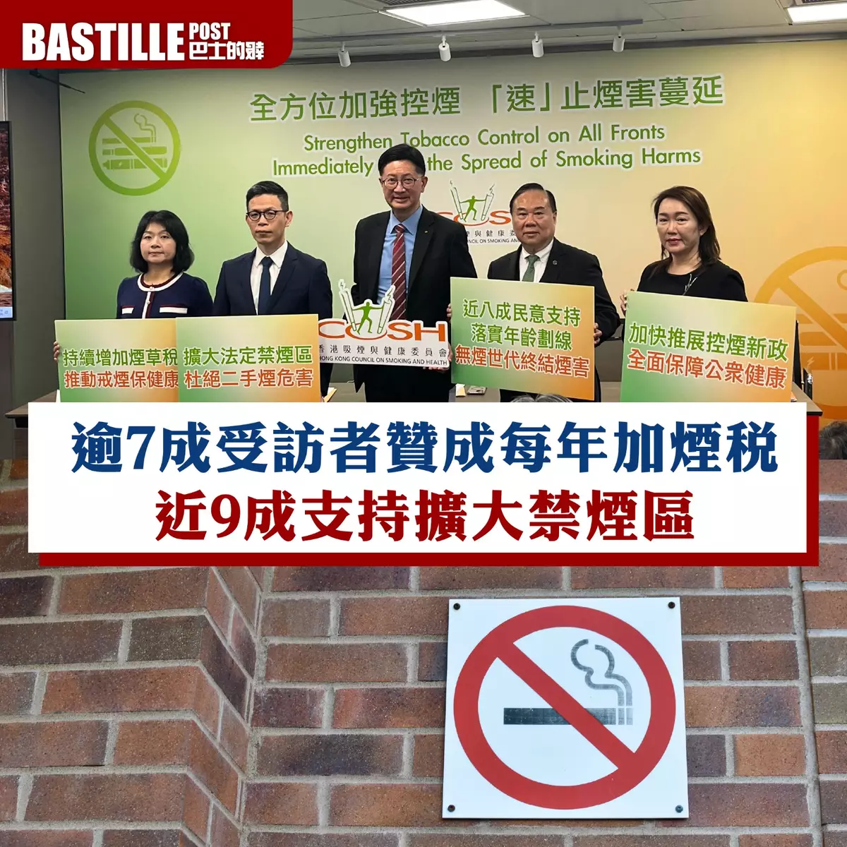 吸煙與健康委員會聯同香港大學和香港中文大學學者,發佈最新控煙調查和研究報告,分析新一階段控煙措施的預期成效,發現超過七成受訪者支持每年增加煙草稅。