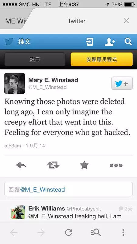 問題是大部份人都忘記有雲端備份服務,他們在手機上刪除了不要的照片,但那些照片卻仍然留在雲端服務器內。正如今次裸照泄露風波的女星之一,瑪莉伊麗莎白溫絲蒂(Mary Elizabeth Winstead)所言,她的照片在很久以前已經刪除了。合理的估計是,她只是在手機上刪除了照片,但沒有刪除雲端上的備份。