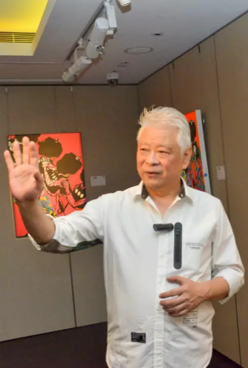老王澤去世一年多,作為長子的王澤坦言有不少感受,「我想為父親做一些事」。受朱自清的《背影》一文啟發,王澤去年繪畫8幅彩畫作品《弦外之音》——影子系列,畫中仿見多個老夫子剪影,搶眼的色彩配上黑色,有強弱對比,好比其父多姿多采的人生,這批作品亦於展覽展出。