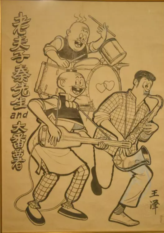 其中一幅展品為現存最早的老夫子漫畫封面手稿,是老王澤於1964年繪畫的第二期漫畫封面〈搖滾老夫子〉,老夫子彈奏電子結他,大蕃薯及秦先生在旁打鼓及吹奏色士風。王澤憶述,其父在60年代熱衷搖滾音樂,繪畫此手稿當年,正值搖滾樂隊The Beatles訪港,形容手稿與時代互相呼應。