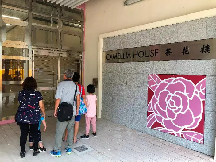 茶花樓為長條型雙塔式設計,樓高二十一層,提供374個出租公屋單位。 房委會圖片