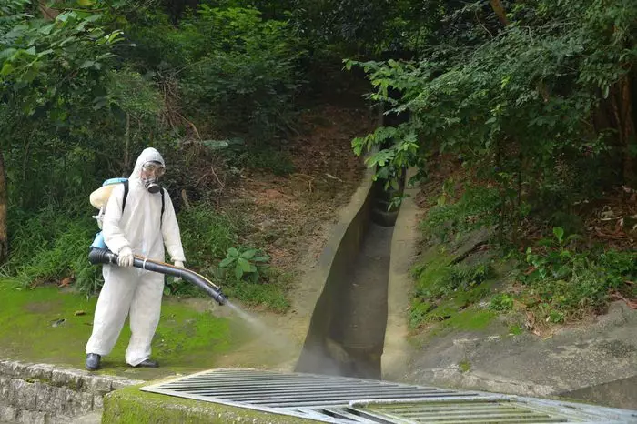 食環署人員噴灑滅蚊劑。