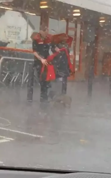 如果見到狗狗淋雨你會如何?有超市職員,不忍心小狗被主人綁在店外淋雨,故此冒雨為小狗披上自己的外套。有司機將其善舉拍下,並上載至社交網站,網民大讚。