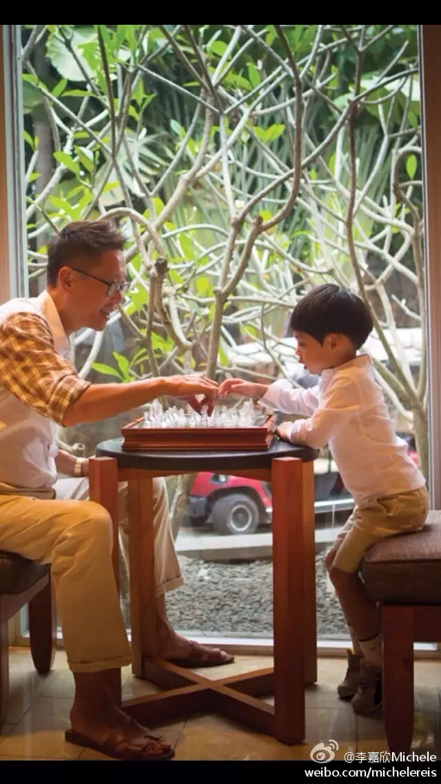 照片裡李嘉欣的大眼囝囝,與父親相對而坐,靚媽就充當攝影師,拍下溫馨一刻,更留下註腳:「棋逢敵手,感恩節快樂!」