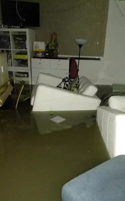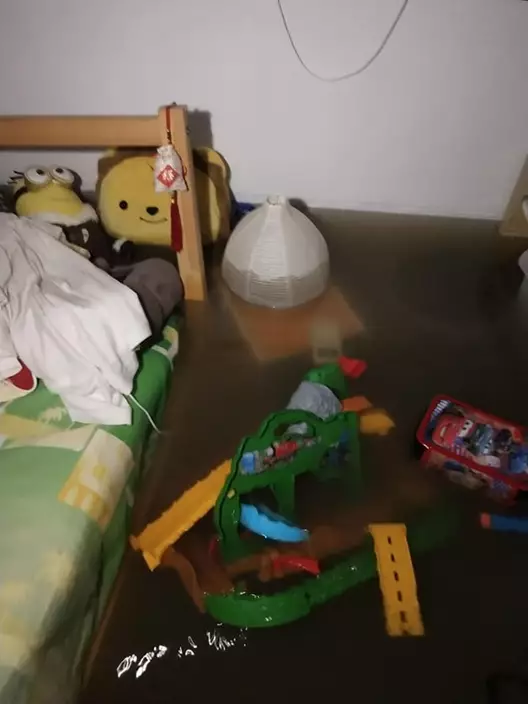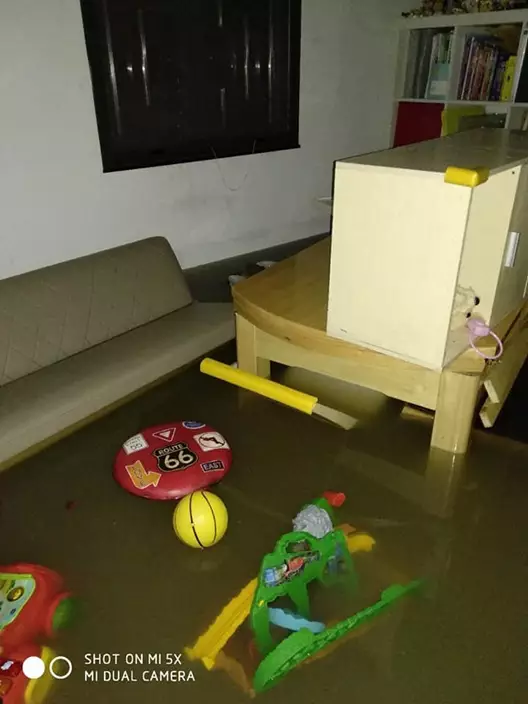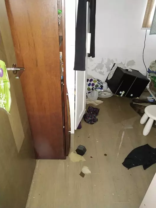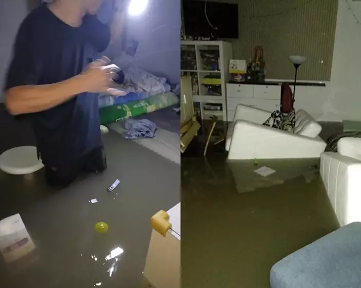 從該名貼主分析的圖片中可見,水浸情況嚴重,水位甚至高於床,並去到成年男子的大腿,而家中物品浮於水中。水浸過後,傢俱及物件散落一地。