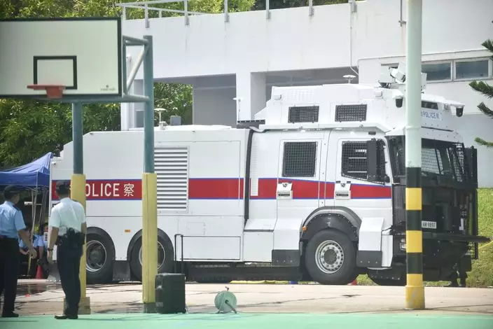 在粉嶺PTU總部,新款水炮車停留約5分鐘後離開