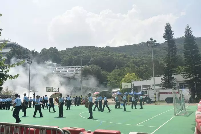 警方今早在粉嶺機動部隊總部進行防暴演練