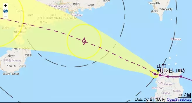 在上午10時,「山竹」集結在香港之東南約790公里,即在北緯18.2度,東經120.3度附近,預料向西北偏西移動,時速約30公里,橫過南海北部,逐漸移近廣東沿岸。