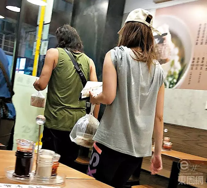 結帳後,兩人就打包外賣離開。(《東周刊》圖片)
