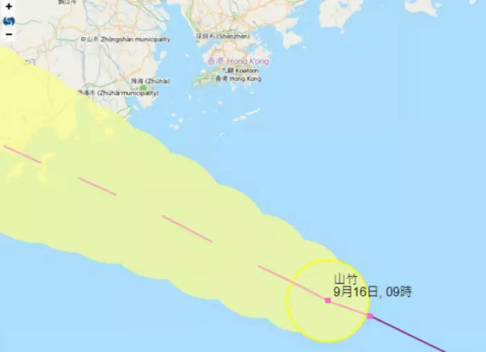 天文台指「山竹」繼續穩定地移向廣東西部沿岸,進一步迫近香港,對本港構成相當大威脅。按照現時預測路徑,「山竹」中午前後最接近珠三角一帶,在本港以南約100公里掠過,預料十號颶風信號會維持數小時。