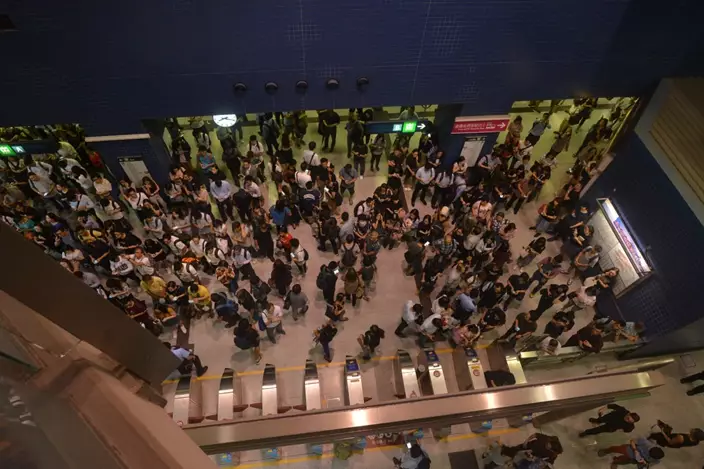 現場人頭湧湧,有打工仔等候超過一小時仍未能上車,形容車站情況混亂,認為港鐵安排離譜。至於站外亦逼滿等候巴士的人潮。