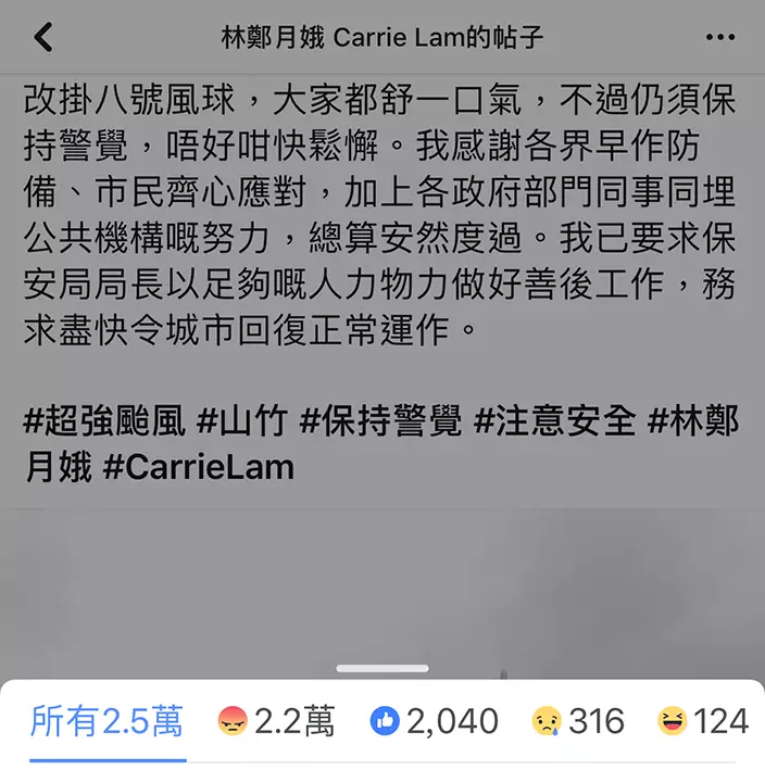 林鄭的Facebook專頁好多「嬲嬲」