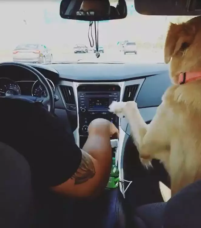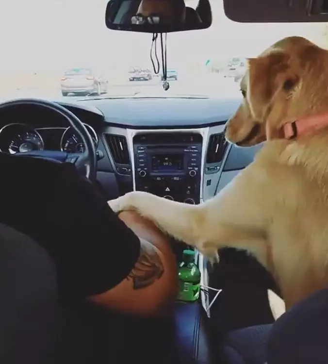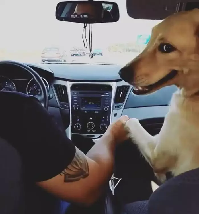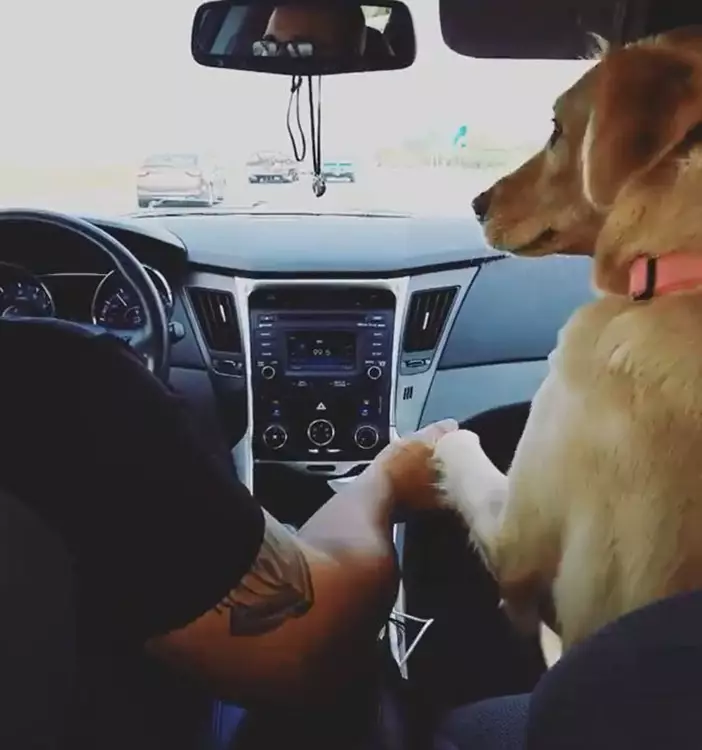該名來自德國的狗主卡莉莎(Carissa)於社交平台上分享短片並表示:「你可能不知道的『Lucy』,牠坐車的時候必須握著你的手。」短片中,男主人正在駕車,而非常喜歡他的金毛尋回犬Lucy則坐在最貼近男主人的副駕駛座,絲毫不願意離開男主人,亦不願將座位讓給女主人。