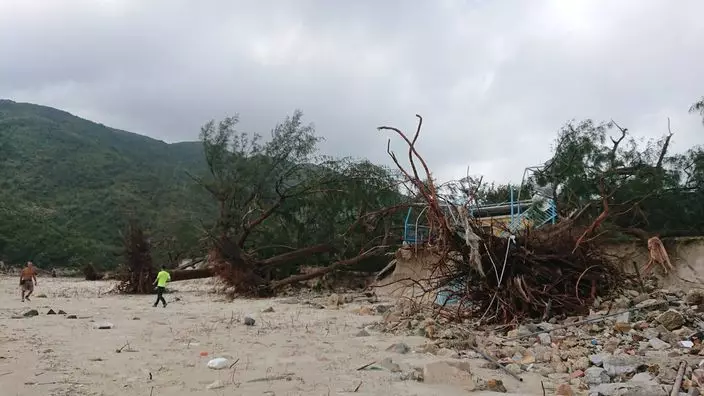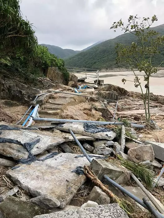 社交網站facebook專頁「西灣地區復育計劃」表示,上周五因應「山竹」吹襲香港,西灣村被安排全村撒離,直至18日往西灣道路完全解封。一如本港其他地區,西灣到處亦出現樹木倒塌,《出水田》及《過河田》等遭嚴重破壞,農田被海水嚴重倒灌、農作物被吹倒折斷、圍繞農田的籬笆遭到破損、儲物屋嚴重變形。
