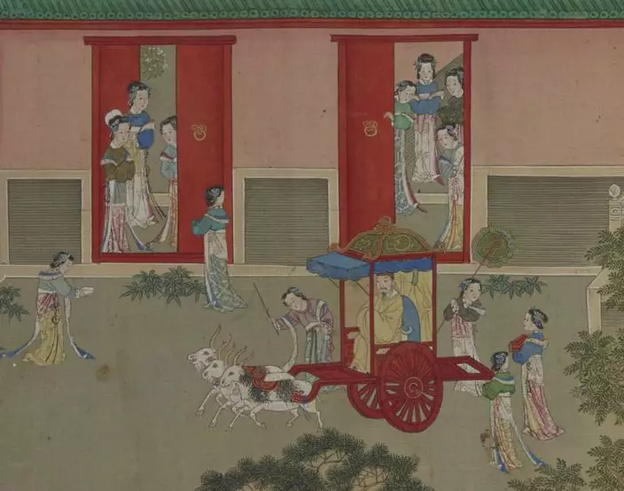 為了獻身,歷代後宮佳麗各出奇謀。晉武帝司馬炎史載後宮宮女眾多,粉黛近萬。每晚臨幸哪個妃子,一度令他十分頭疼,最終想出一個辦法:他坐著羊車,在宮苑隨意行走,羊車停在哪裡,就寵幸哪裡的嬪妃。理論上,這個辦法很隨機,相對公平。不過很快就有位妃子想出應對之策:將竹枝插在門上,把鹽水灑在地上。羊兒喜歡鹽水味道,停下吃食,於是羊車就停在她的宮門口……這個故事就是成語「羊車望幸」的由來。