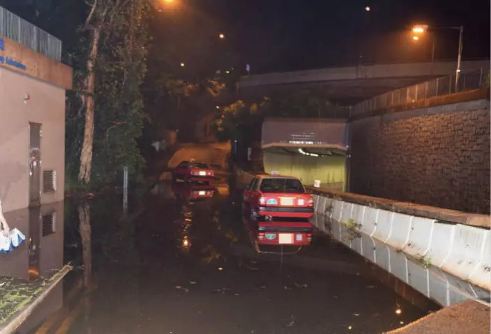 受凌晨驟雨影響,清水灣道有兩處地方相繼出現水浸,3輛車輛被浸壞死火。有司機一度被困,須由消防救出,事件中無人受傷。
