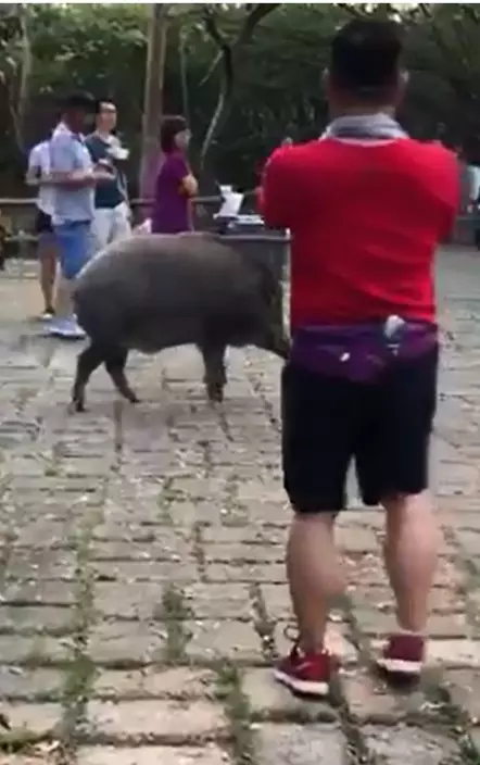 野豬直闖燒烤場期間,惹來不少遊人圍觀,有人跟隨野豬動向,用出手機拍攝;亦有人讓路,及與野豬反方向走。片中亦聽到有市民稱「(野豬)大肆破壞喎」、「比啲酒佢飲下」。