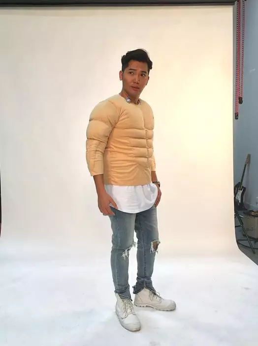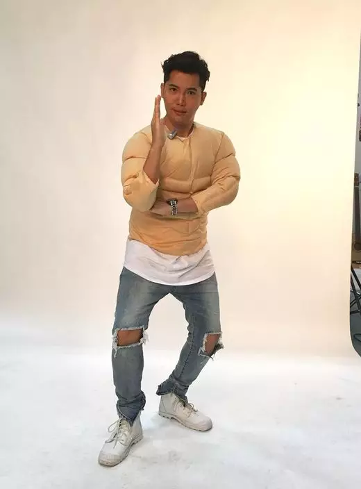 除了食外,東東最開心是可以變成大隻佬償還心願:「其實係講我要扮吳剛師傅,入行咁耐都係第一次着肌肉衫。自出世以來都未試過真正大隻,原來大隻嘅自己都幾正幾嗒得杯落。(咁有冇着完件衫的起心肝操大隻?)真係唔敢再講話的起心肝減肥,因為好似減極都咁肥,但變大隻的確係我嘅心願,相信有一日會實現。」