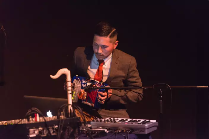 本地著名作曲家和媒體藝術家楊嘉輝,他的作品建立了一系列挑戰人類日常與物件、故事和空間之間關係的奇特場景。楊嘉輝在這次的裝置作品中研究出全新的方式來演繹,不僅是用眼睛「觀看」,還透過我們的耳朵來「聆聽」。他的作品集中探索西源里及其周邊的聲音環境,同時他亦希望觀眾用耳朵感受身邊的景觀和環境。透過注入新的聆聽和認受方式重新演繹立體的建築,他希望以這個藝術作品鼓勵觀眾去細心聆聽身邊種種的空間、人物和故事,探索無限可能。