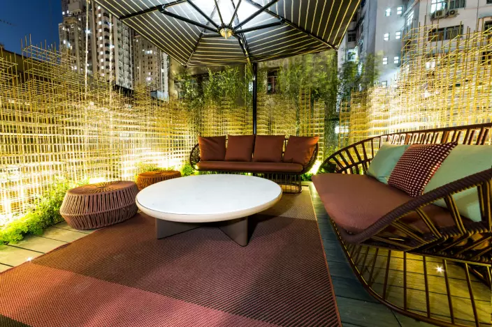 抬頭仰望,會看見每個露台頂部均鑲嵌了鏡面不銹鋼。來自紐約布魯克林的國際級建築設計事務所nARCHITECTS的設計師Eric Bunge及Mimi Hoang解說:鏡鋼以斜度45度放置,無論在街上、露台上,都可以反映到區內景致與建築的融合,加上不同的光線、天氣等變化萬千,是一種「我中有你.你中有我」的獨特體驗。