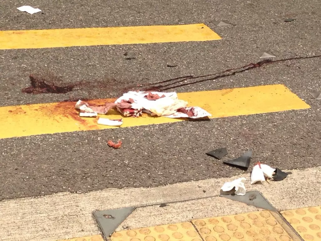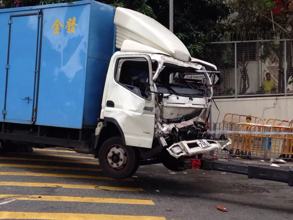 現場安全島燈箱及交通燈都被撞毀,貨車翻側後地上留有大量雜物。另外,被撞到的75歲男傷者被送院後,現場留有大量血跡,其假牙飛脫遺在地上。