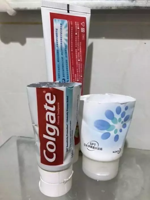 慳家女網友在fb爆廢公社問道,由於牙膏用一般方法很難擠乾淨,往往以為用完了,裡面卻還剩一大堆,所以她將牙膏剪開,方便繼續使用;沒想到朋友見狀忍不住驚呆,甚至在聽完她說,「其實裡面還有很多啊」,瞬間大翻白眼。