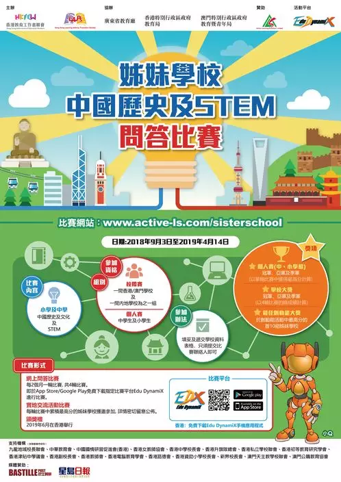 姊妹學校活動多元化,中史及STEM問答比賽,歡迎姊妹學校齊參加
