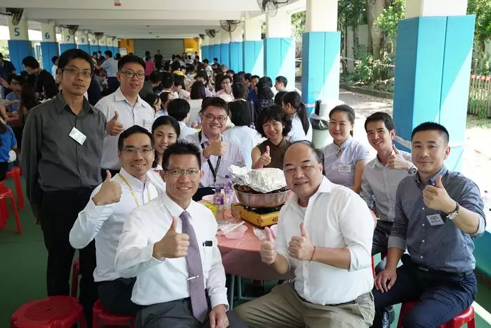 鳳溪一小與姊妹學校師生享用盆菜,藉此推廣本地傳統文化