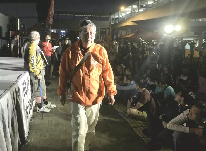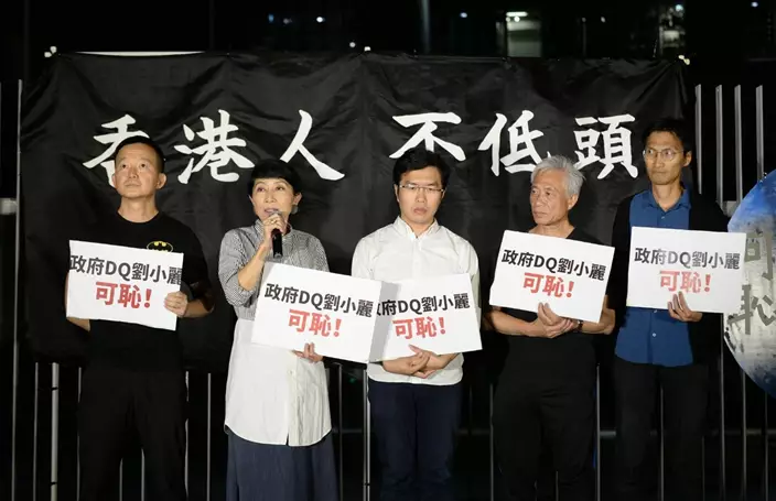 民主派晚上8時在政府總部東翼前地發起集會,抗議選舉主任裁定工黨劉小麗提名無效,劉小麗以及另一名參選人李卓人現身。