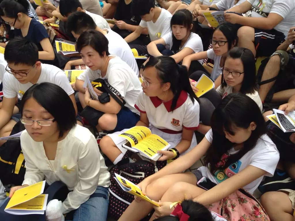 大批學生早上在金鐘統一中心地下集合,之後一同前往立法會外面一段添美道集會,大部分人穿上白衫,有不少學生穿著校服,並扣上黃絲帶。大會向學生派發罷課手冊,由於人數眾多,大會只印有200本,手冊迅速派完。
