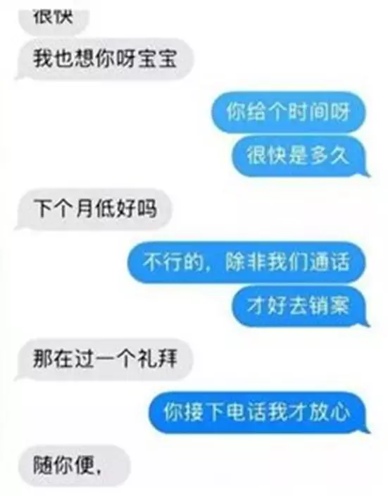 楊姓男子的女友失蹤後數日突然傳來訊息,向他報平安,並指自己去旅行,問他索取銀行卡跟支付寶密碼。訊息中女友一直叫他「寶寶」,與女友日常叫法完全不一樣,楊男擔心女友不測,再度前往派出所報案。