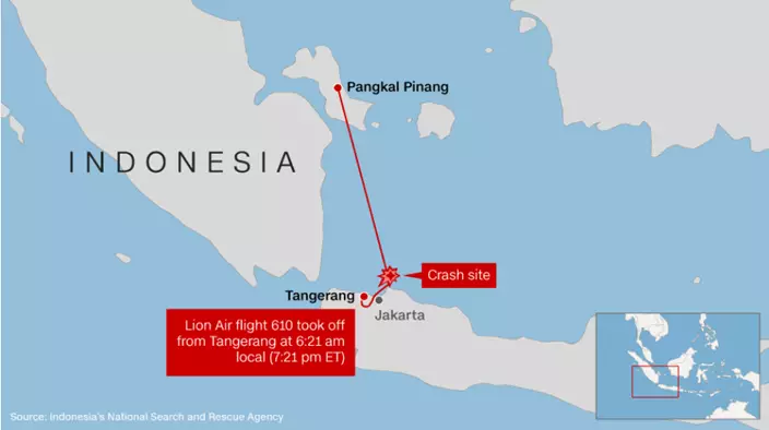 是次失事的波音737 MAX型客機,於數月前才投入服務,不料日前機師提出折返雅加達的要求後不久,飛機即墜入印尼北岸外的爪哇海。該班JT610航機在突然下墜的同時加速,然後在起飛12分鐘後從雷達上消失。工作人員在雅加達的一個碼頭貨倉,將遺體、飛機殘骸和尋獲的乘客私人物品分開,然後將包括屍塊送往醫院作DNA檢測。