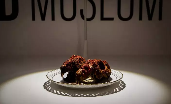 博物館展覽中的80件食品包括公牛的陰莖,秘魯的青蛙冰沙,在中國和韓國由小老鼠自製成的酒,以及瑞典的鹽醃鯡(surstromming),是一種非常有名的腐爛發酵鯡魚。