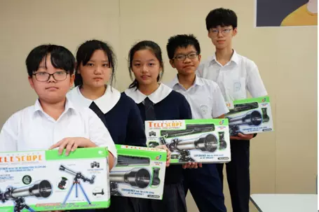 中一學生(左起)王浩謙、徐熙宇、姚麗領、苗尚炫、臧家偉在電子遊蹤活動中脫穎而出,成為最高分組別。