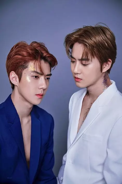 雖然近年EXO都不再「收收埋埋」吝惜好身材,但始終除了在舞台上,也不太多機會看到他們「騷肌」。結果2019年SEASON'S GREETINGS就滿足了一眾EXO-L的願望,除了十分乖的D.O.,其他成員西裝外套底下什麽都沒有穿,胸肌若隱若現。尤以燦烈的大「Deep V」最爲搶鏡,露出圓弧形胸肌讓網友忍不住留言表示「看看燦烈的胸」、「練得真好」。