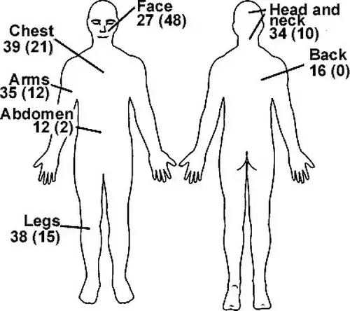 研究顯示,橡膠子彈造成的嚴重傷害主要集中在四肢,也會造成頭、頸、臉和胸部的受傷。有61%為鈍器傷,39%為穿透傷;而其中3宗死亡案例中,兩宗是因子彈從眼睛射入腦部造成,另一宗則是在膝蓋中槍,在手術後死亡。