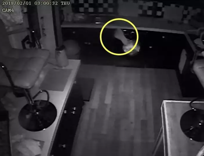 攝影機拍到兒子貝里在倒茶時,枱面上的茶杯突然自己移動,貝里也察覺到,但是枱面上明明是乾的,不會是因為水令杯子滑動。而另一片段則見到黑漆漆的廚房裏,突然有紙巾飛落地,而沒人的飯廳裏,椅子突然移動等等。